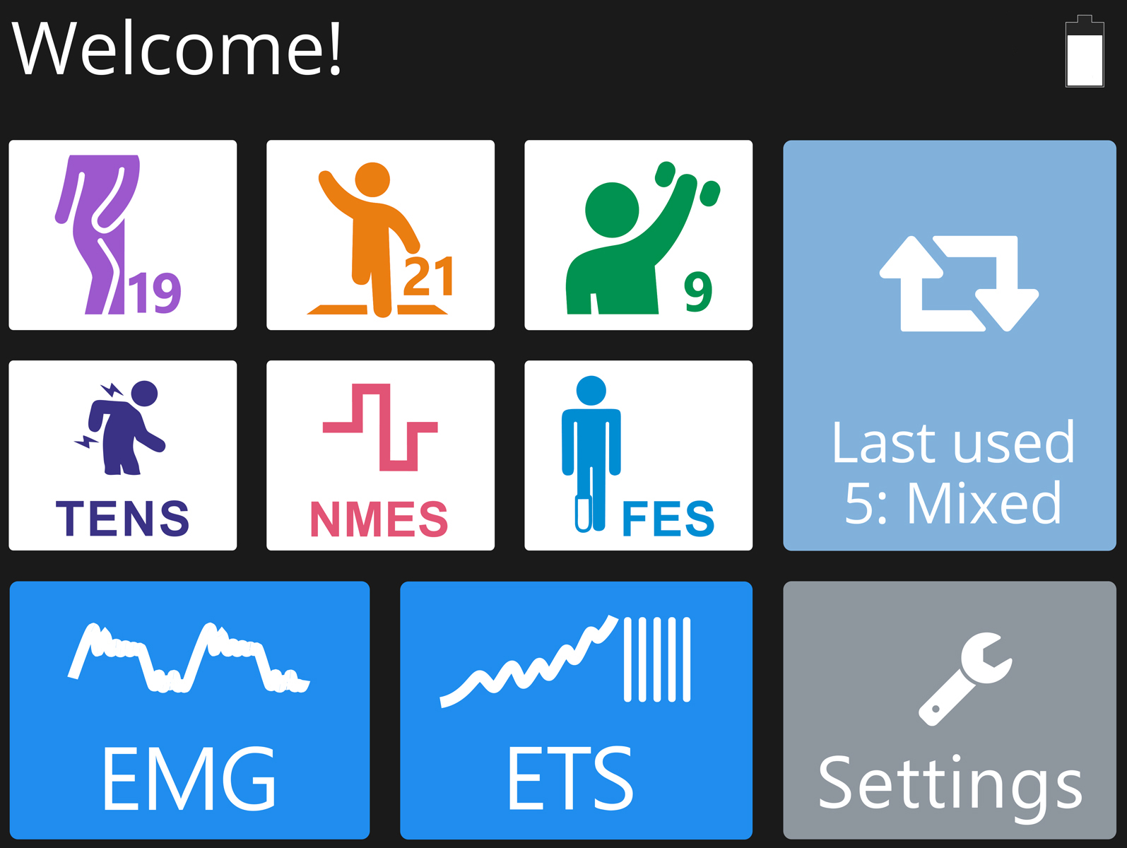 - New and Improved touch-screen with full colour display. The new user friendly interface makes it a self-explanatory unit with the interactive learning on the go, including electrode placement, running EMG graph, EMG biofeedback Games and Templates as well as many other helpful tools.
